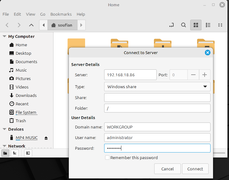 Linux Mint 22.1 koneksi windows Server 2022 :